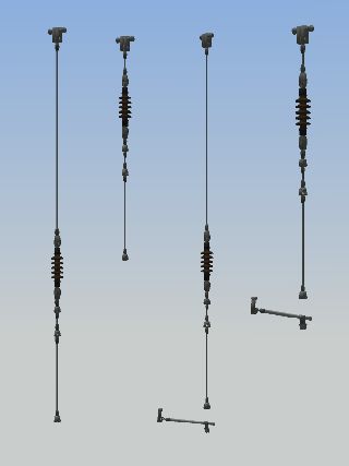 Auf Grund der unterschiedlichen Abarbeitung von eingestellten Achsen in EEP habe ich die Halter und Abnehmer hier in diesem Modellset eine Möglichkeit der Feineinstellung gegeben. So kann ein genaueres Einstellen des Halters am Tragseil erreicht werden. Der maximale Einstellweg der Feineinstellung beträgt 50cm an allen Modellen. Somit soll gewährleistet werden, dass nach öffnen der Anlage die Endpositionen der Tragseilhalter an den vorgegebenen Punkten bestehen bleiben. Diese Modelle sind für das QM-System DB und DR von TB1 (V11NTB10061 bis V11NTB10064) optimiert worden. Für einen Einsatz in anderen Systemen gibt es keine Gewähr.