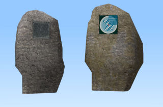 Markstein "Geografische Mitte Bayerns" in zwei Versionen