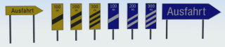 Warnbaken und Ausfahrtschilder für BAB und Autostraße