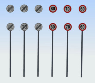 Begrenzende und auflösende Verkehrszeichen mit unterschiedlichen Geschwindigkeiten.