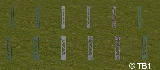 In diesem Modellset befinden sich 12 Verlängerungen (2m hoch) für die Gittermasten in den Ausführungen neu (DB, DR und Epoche 6), gealtert (DB und DR) und alt (nur DR). Diese wurden in den Ausführungen 6Gl und XGl erstellt. Bauteile „6Gl“ sind für die Gittermasten 6Gl, die mit der Bezeichnung „XGl“ sind für die Gittermasten ab 10Gl und größer und müssen dann somit der Höhe entsprechend an den jeweiligen Mast angehoben werden.