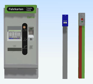 Der Fahrkartenautomat besitzt eine Tauschtextur für das Logo und die grüne Farbe.