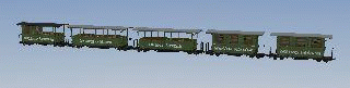 Personen-, Buffet- und Gepäckwagen mit Holzverkleidung