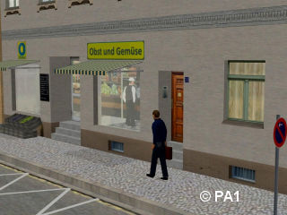 Das Modell selbst hat einen hohen Funktionsumfang. So sind die Obst- und Gemüsekisten in das Ladengeschäft verschiebbar, die Markisen einzeln beweglich und die Fahne auf der Rückseite ebenfalls versenkbar. Die Hausnummer, das Firmenlogo und die Ladenbezeichnung sind als Tauschtexturen ausgeführt. Zusätzlich zum Hauptgebäude werden ein offener Abfallschuppen, ein kleiner Müllcontainer und Verkehrszeichen mitgeliefert. Licht und Rauchfunktion sind vorhanden.