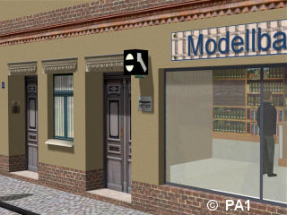 Die Bahnhofstraße 11 ist ein Vordergebäude zu Gewerbeeinrichtungen im Hofbereich. Typischerweise versuchte man in den Städten, mangels Transportinfrastruktur, die Arbeitswege kurz zu halten und errichtete Werkstätten in den Hinterhöfen. Dieses Modell soll eine solche Konstellation darstellen. Darum ist im Set zusätzlich noch ein Werkstattgebäude enthalten. Zur Detailierung der Häuser und Nutzung für die heutige Zeit wurde noch ein Satz Satellitenschüsseln beigelegt, sowie die Möglichkeit geschaffen, am Haus und an der Werkstatt die Firmenbezeichnungen und die Hausnummer zu verändern.